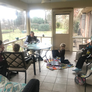 Tennessee Snow Day!! Those of you from places where you get real snow will certainly call this a dusting but for us, this was great snow!!! Everyone was excited, the school was canceled, lots of snow play, hot cocoa, and warm fires made it a great day. I have to explain the last two pictures because it broke my heart. Alex had said she wanted to play inside so she did but she would watch the other kids all playing through the window. She got dressed and went to join them but got discouraged because they were pretty far out in the field playing. She didn't come in to ask for help getting out there but we looked out the window and saw her watching them and walk over and sit on the brick. I was a puddle of tears watching her because she has pretty much-done everything and kept up fairly well throughout this process just in her own way. One of the downsides to the medication she is on is that she has low energy and trouble sleeping well. She just didn't think she could get all the way out to them. Another person I am thankful for is my baby sister, Rachel. She saw Alex and saw me breaking down and went outside and carried Alex out to the rest of the kids and helped her play with them. Wow, we are so blessed to be surrounded by so many loved ones who help us carry this.