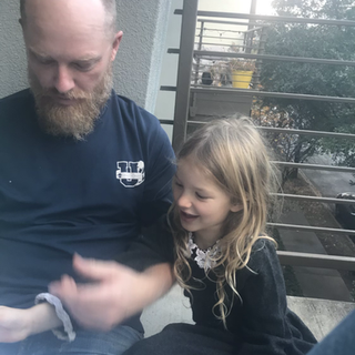 Brent gave Alex a new hat all of her own to match his since she is always stealing the one off of his head. We read books and colored on the balcony on nice days.