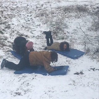 Sliding, sliding, sliding!! There were races of all kinds. The hill may not be very big but it kept this crew, including the mamas, entertained and warm for hours. Who knew Kindergarten mats made awesome sleds. I sure didn’t. Have I said how creative and fun these kids are? 😄😂 They probably tried ten different options of items to slide with before settling on these. Perseverance paid off!