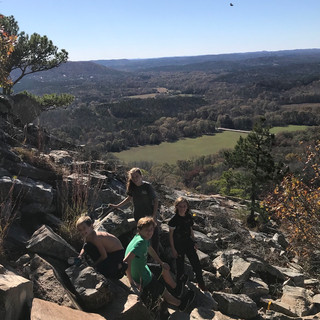 Monday morning, after we packed up our camp site and before we took off back down the road we decided to find somewhere to hike. We went to Pinnacle Mountain Park. There was a really neat paved walking path along the river with huge Cypress trees. We had fun learning about the Cypress trees and the other plants and animals in the area. One Cypress was huge and had a hole in the middle large enough for us to climb inside. Made us think of My Side of the Mountain.